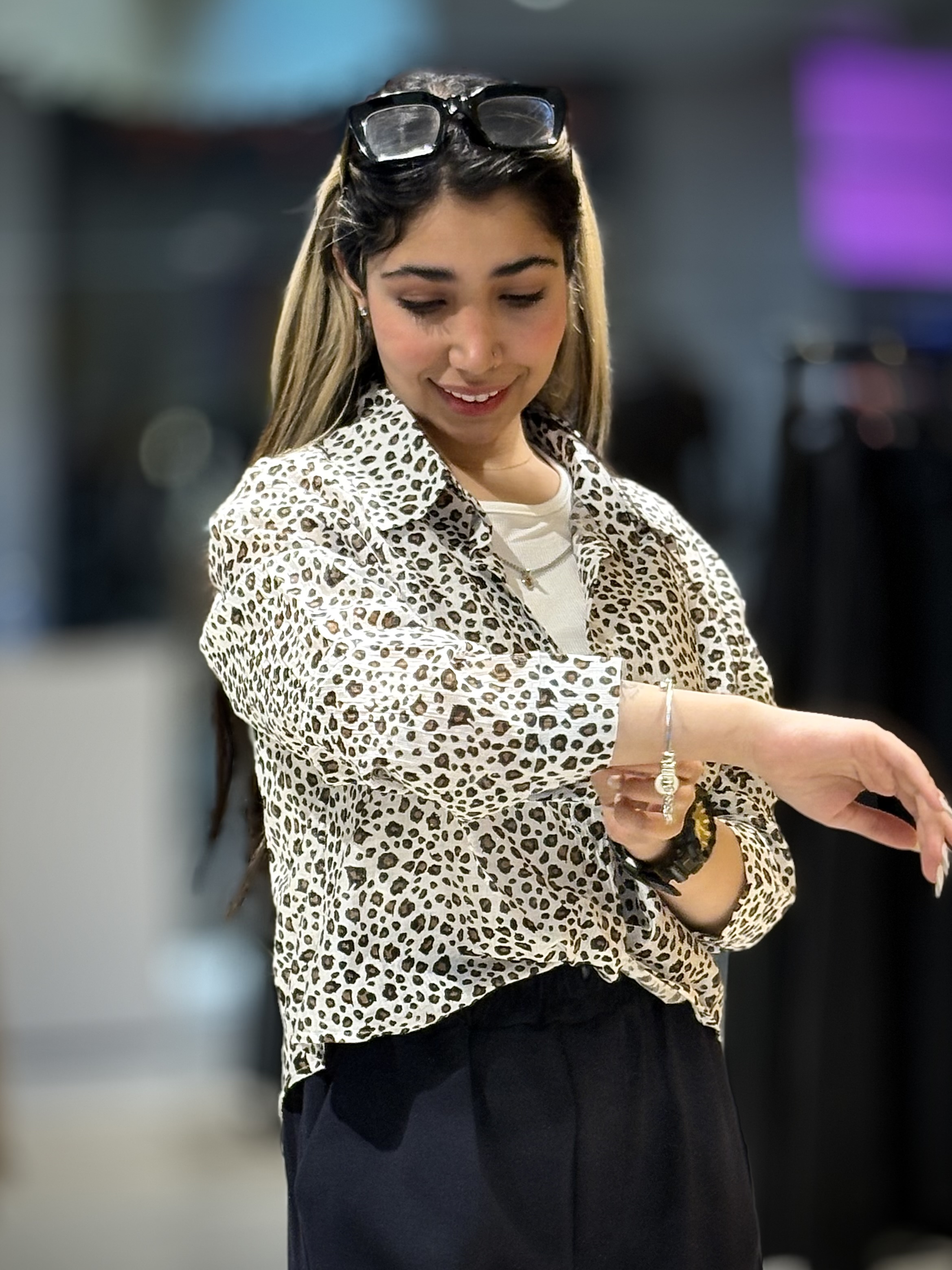شومیز پلنگی نگین دار همراه با کراپ